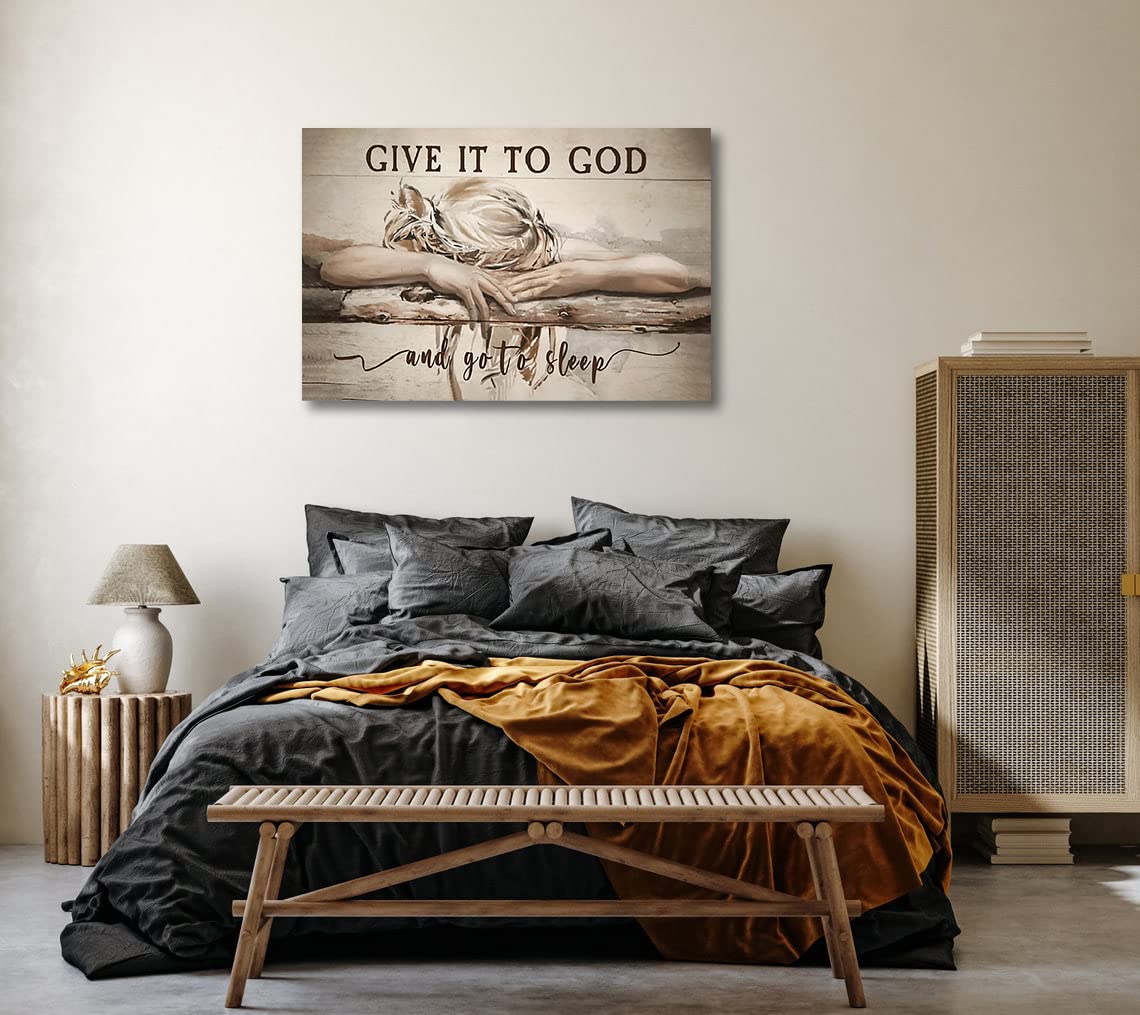 - Inspiring Quote Canvas Wall art for Bedroom Decor: This canvas wall art features the calming "Give it to God, Go to Sleep" quote, perfect for any room or house decor and a reminder of faith and surrender. perfect for bedroom or office decor.