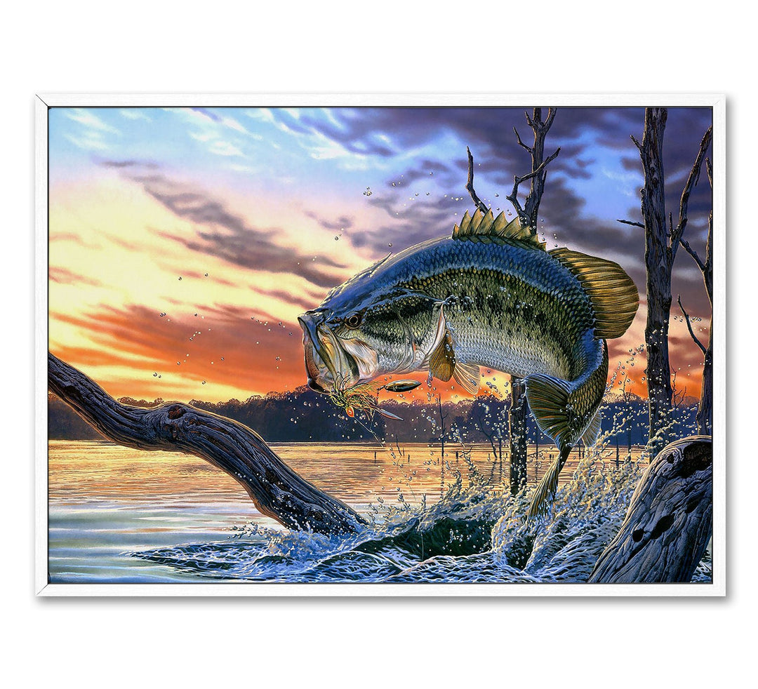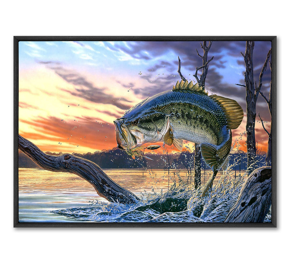 - Large Mouth Bass Fish Canvas Wall Decor, Painting for Living Room Bedroom Gallery Wrapped. Fishing Outdoor hobby painting