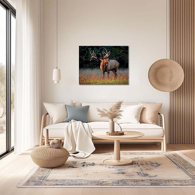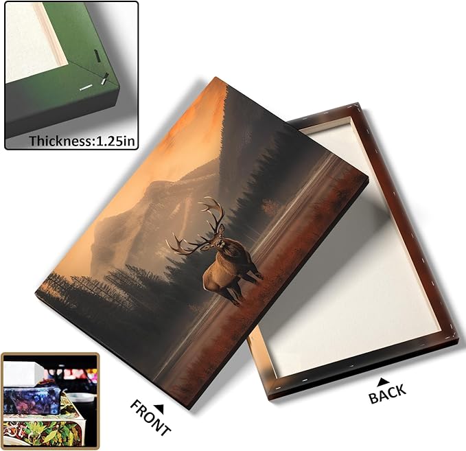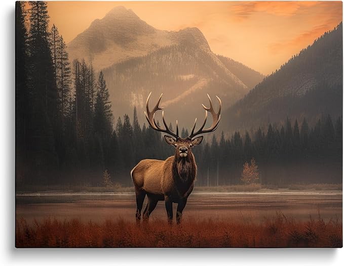 • Enchanting Deer Sunset Scene Wall Art: This mesmerizing deer picture captures a tranquil sunset scene in the woods, making it an ideal piece for wildlife enthusiasts. Perfect for enhancing the ambiance of your forest lodge or rustic home decor.