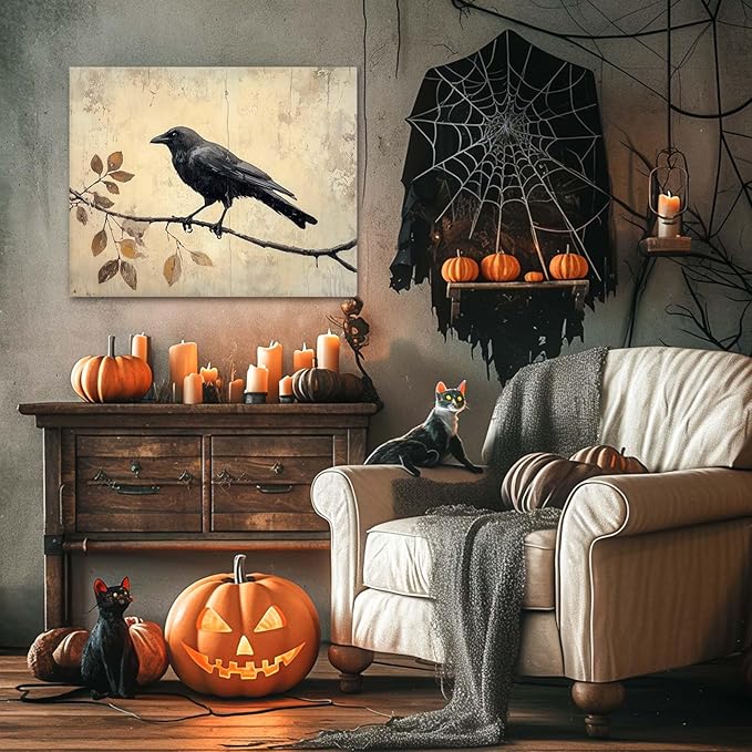 - Black Crows Poster: Whether you're drawn to the brooding essence of 'The Crow', or the scholarly atmosphere of Dark Academia scenes, each piece is a testament to timeless allure and intellectual depth.Halloween poster which can provide decoration for kitchen,dining room,bar, dorm ,living room,bedroom,apartment, hotel, office, Halloween party.