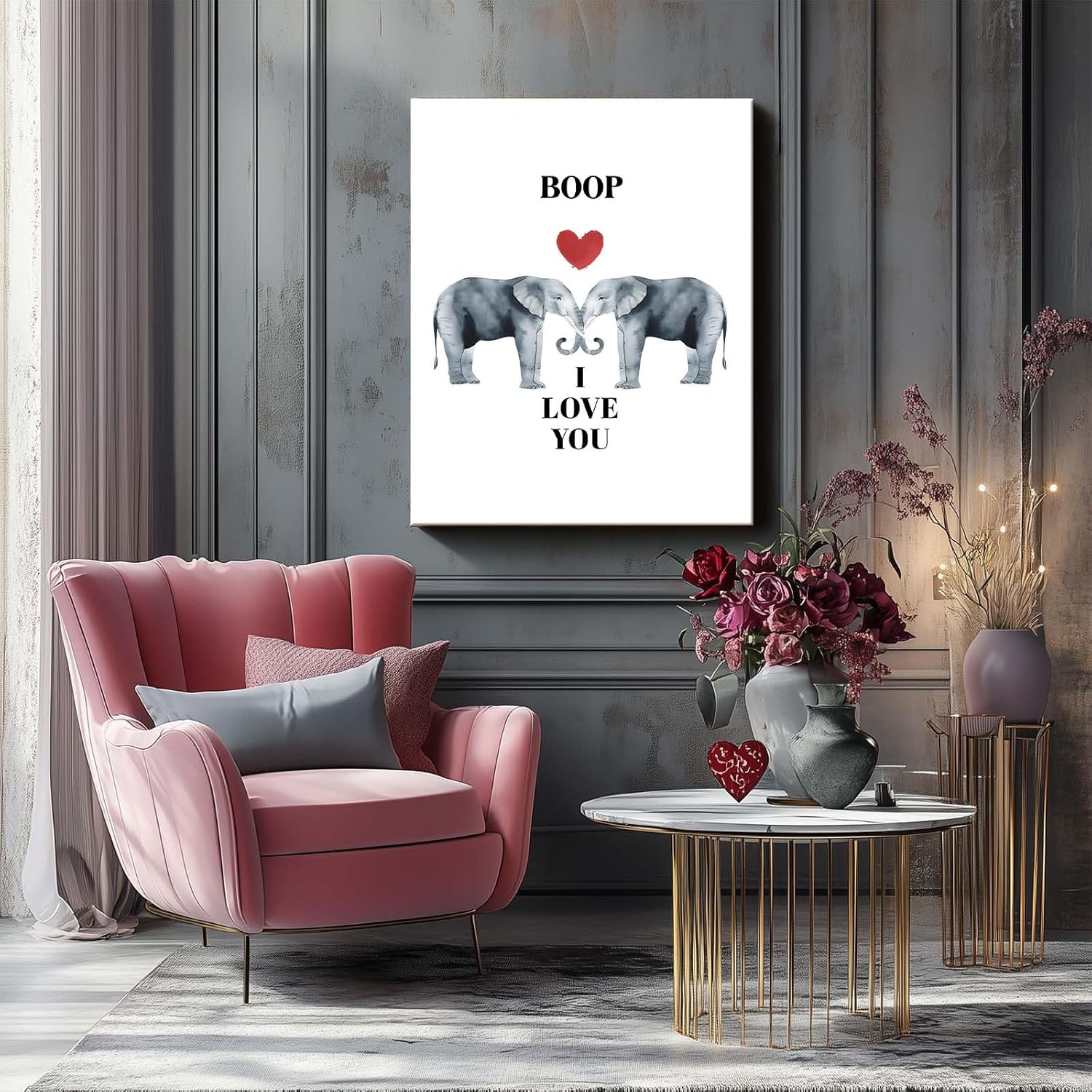 - Adorable and Romantic Wall Print Canvas: This Valentine's Day canvas wall art features two elephants touching trunks to form a heart with the sweet phrase "Boop I Love You." The charming and whimsical design brings a playful yet romantic touch to your home decor.