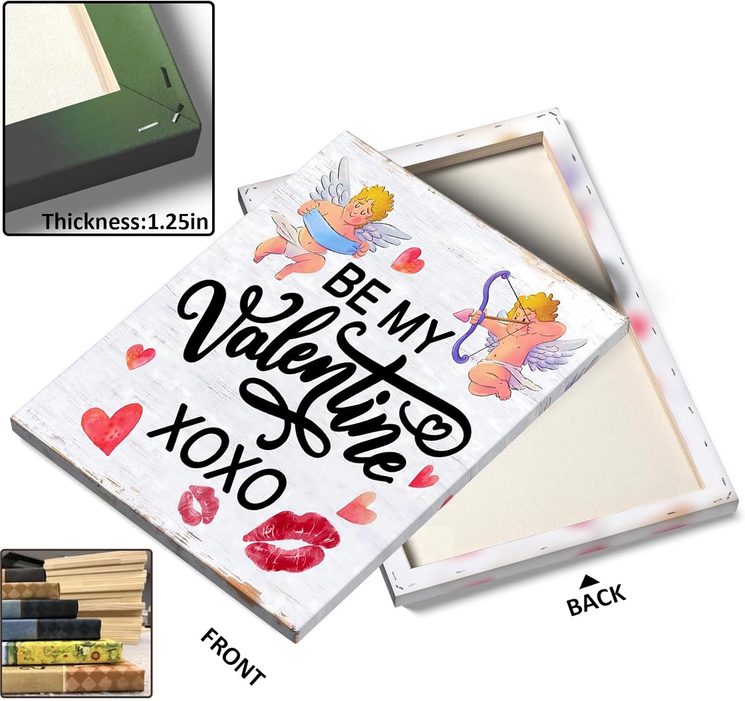 - Charming Cupid Design Wall Art: This delightful canvas art features whimsical cupids, romantic hearts, and playful "Be My Valentine XOXO" typography, making it the perfect representation of love and affection.