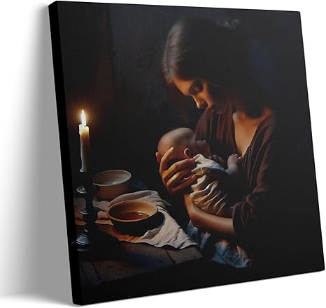 • A Heartwarming Gift for Mother's Day: This touching oil painting of a mother gently cradling her child by candlelight captures the pure essence of maternal love. It’s an ideal gift to express love and appreciation for your mother on Mother’s Day.