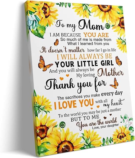 • Thoughtful and Heartwarming Mother's Day Gift: This beautifully designed canvas print features a heartfelt message celebrating the love between a mother and her family. Perfect for Mother's Day, this piece adds a personal touch to your home decor and makes a thoughtful gift for mothers, daughters, and families alike.