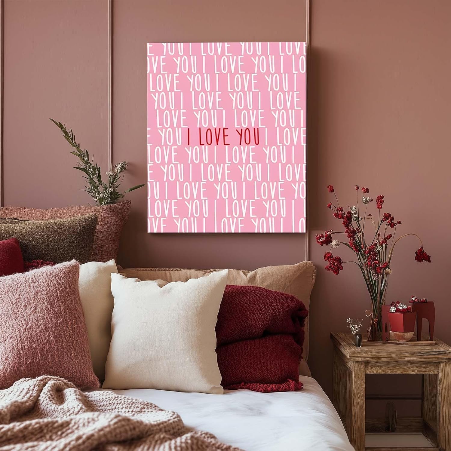 - Romantic Typography Canvas Wall Art: This canvas features a heartfelt "I Love You" pattern in a charming pink and white palette, creating a meaningful statement piece perfect for Valentine's Day celebrations or year-round romantic decor in bedrooms, living rooms, or gift exchanges.