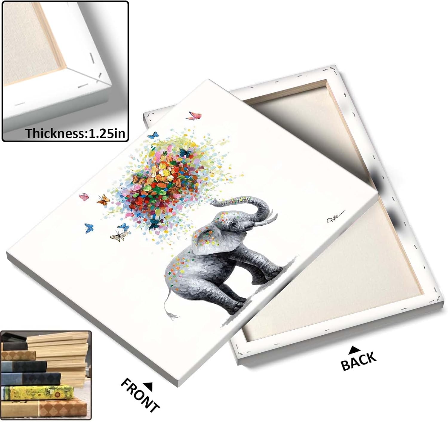 - Whimsical Artistic Design: Featuring a delightful elephant spreading colorful butterflies and a heart-shaped burst of colors, this canvas wall art adds an enchanting and vibrant touch to your home decor, perfect for Valentine's Day or any romantic setting.