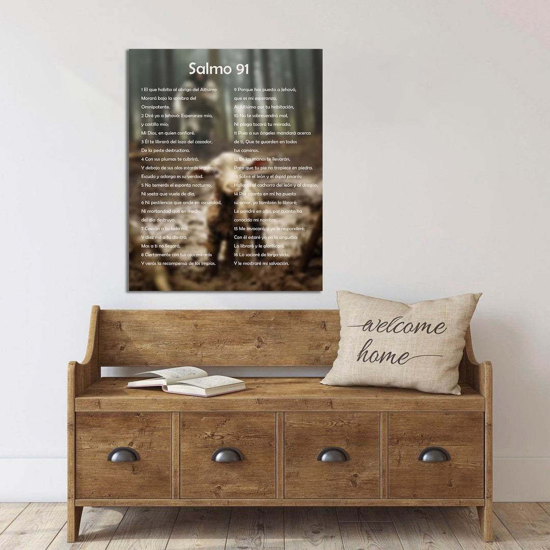 - Psalm 91 Inspiration: This wall art showcases Psalm 91 in Spanish, a renowned biblical verse celebrated for its spiritual protection and solace.