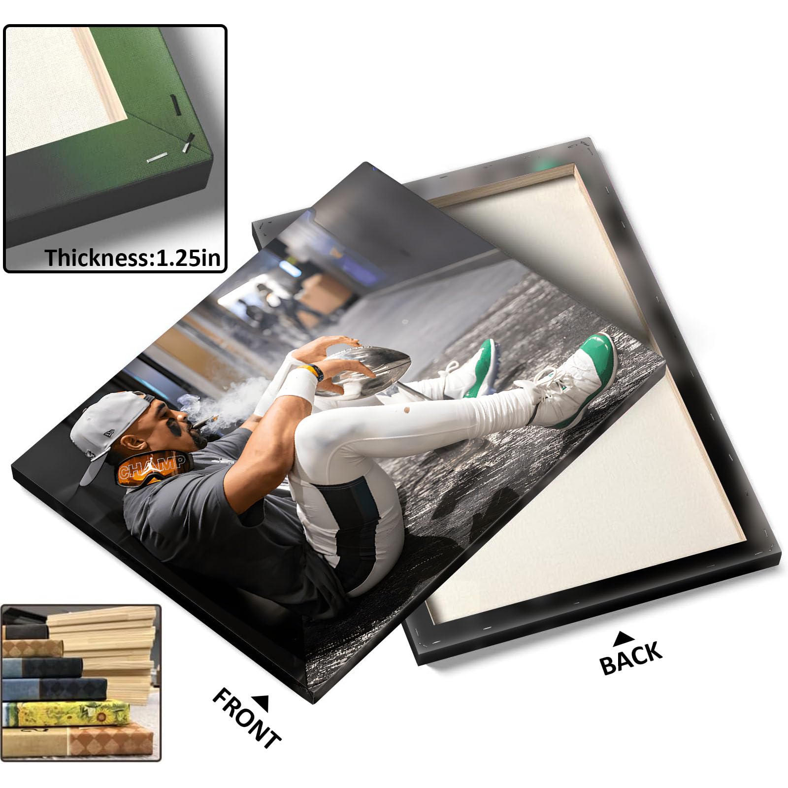 - High Quality: Printed On Premium 300 Gsm Canvas, Our Modern Football Star Wall Art Features High-Definition Artwork, Using Archival Inks To Resist Fading, Dust, Scratches, Wrinkles, And Moisture. These Multiple Sizes Available, Vibrant, Long-Lasting Football Prints Offer Waterproof, Odor-Free Enjoyment For Years To Come.