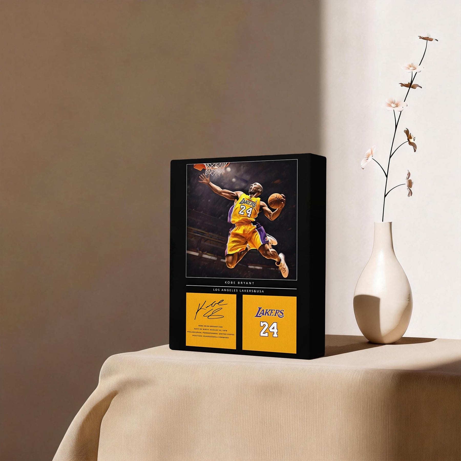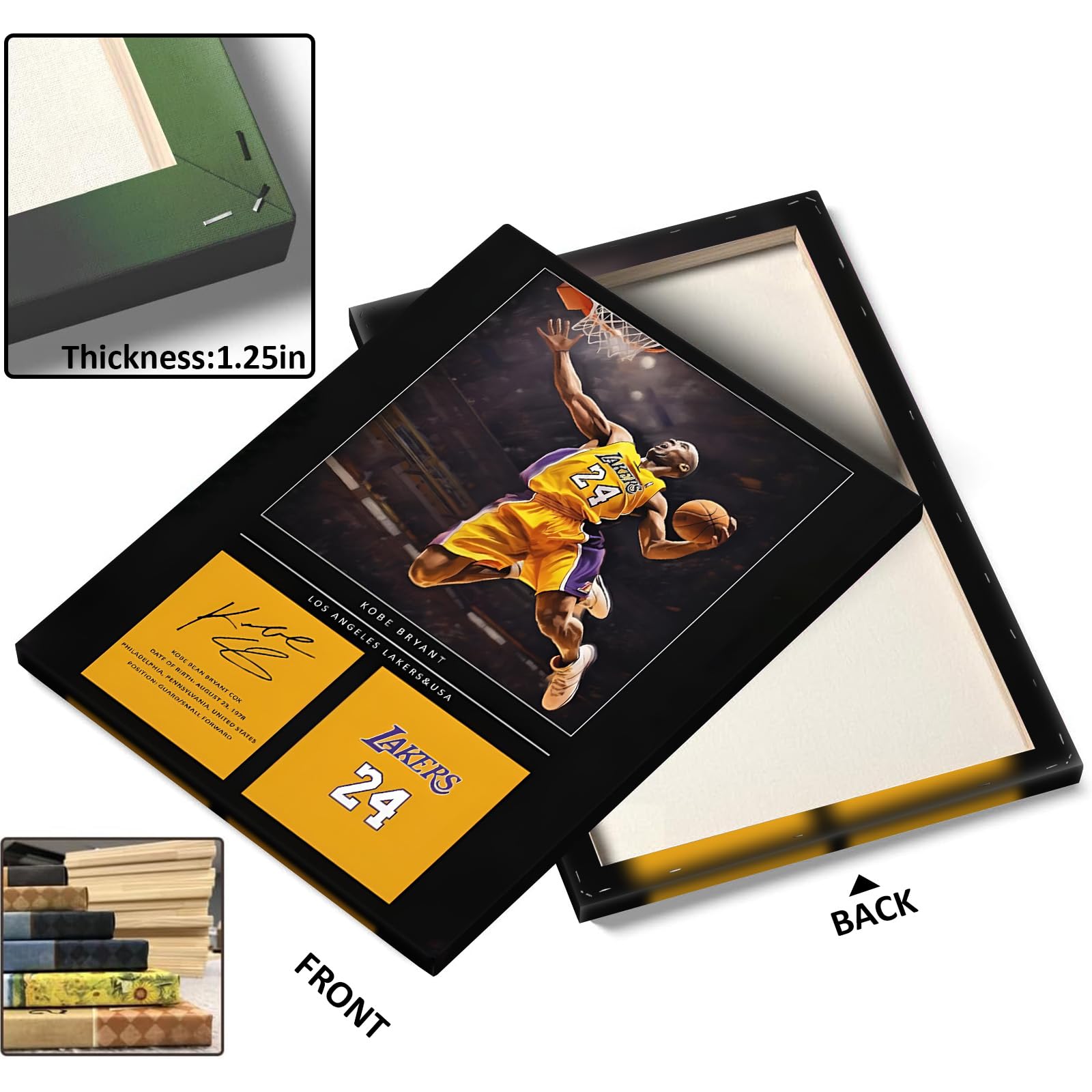 Kobe Bryant Canvas Wall Art Decor - Lakers No. 24 Dunk Poster with Signature Design, Inspirational Basketball Artwork for Home